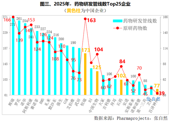 2025年,在全球药物研发管线数Top25药企中,中国有4家。